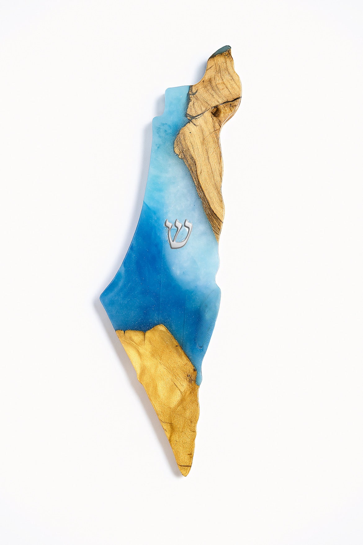 מזוזה ייחודית בעבודת יד בצורת מפת ארץ ישראל.